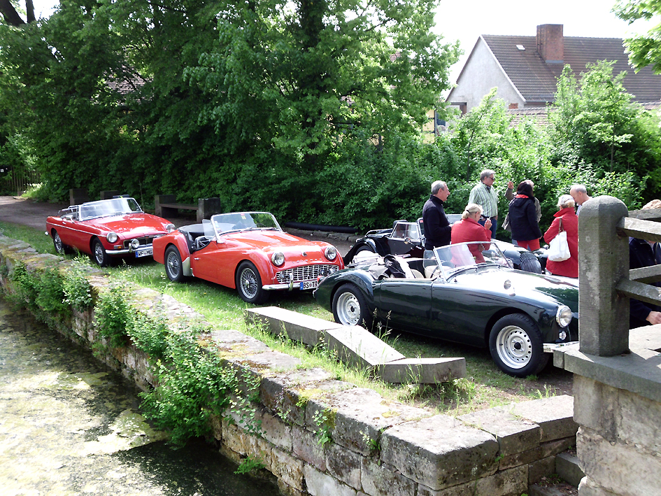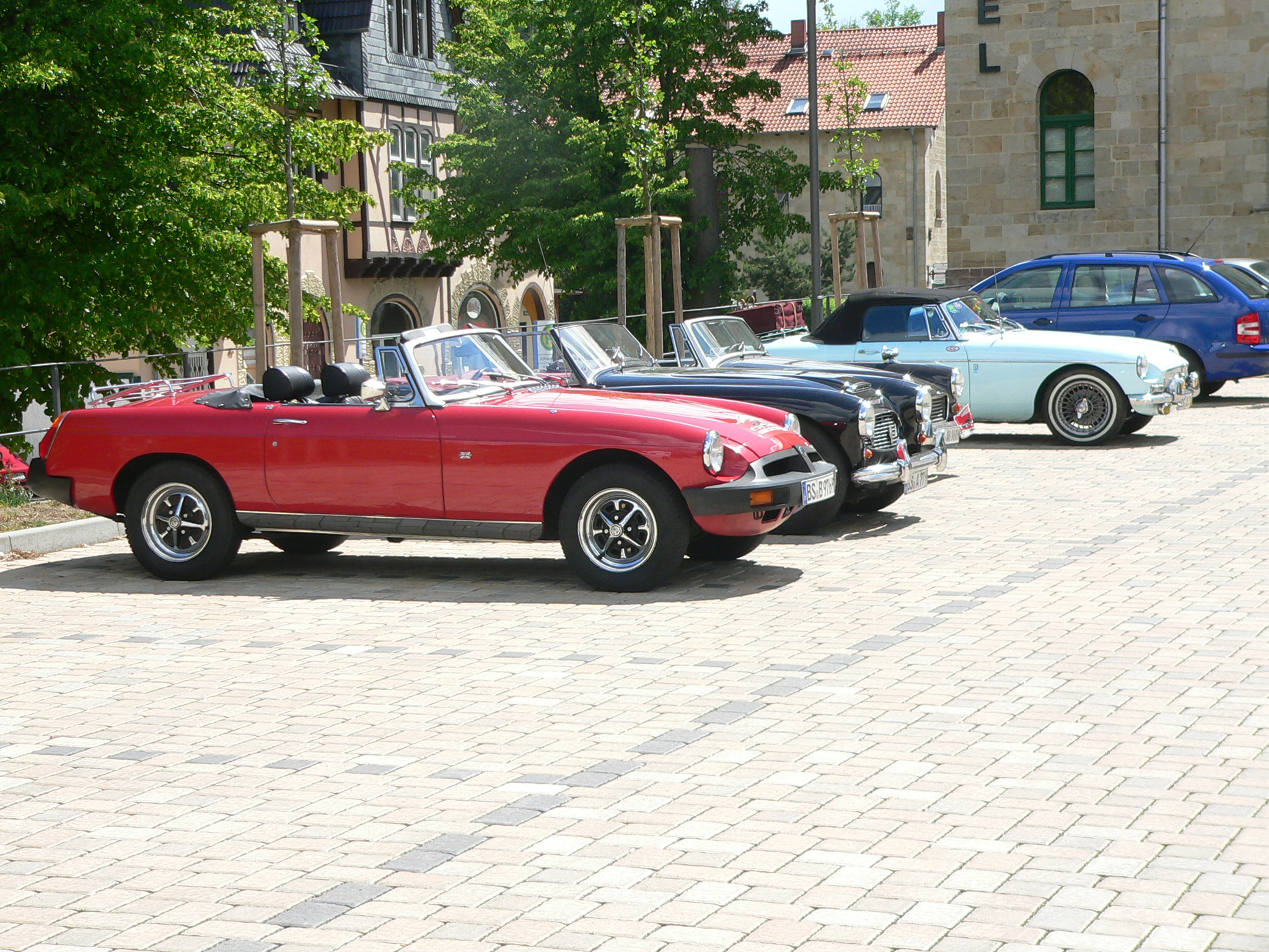 Schon kurz darauf setzt sich das bislang größte Teilnehmerfeld der bisherigen Frühjahrs-/Sommerausfahrten Richtung Süden in Bewegung, um auf große Tour nach Weimar zu gehen. 65 Teilnehmer mit über dreissig Fahrzeugen waren dem Ruf des Organisationsteams Dietrich, Rolf und Michael gefolgt, auf die dreitägige mit „Weimar mit Wagen” titulierte Reise zu gehen. Alle Fahrzeuge waren erstmalig mit vom Inhaber Joachim Kleppe des auch in Oldtimerkreisen gut bekannten Unternehmens Bornemann Fahrzeugtechnik und Reifen gesponserten Rallyeschildern „Classic Cars Braunschweig on tour” hübsch und gut gekennzeichnet.